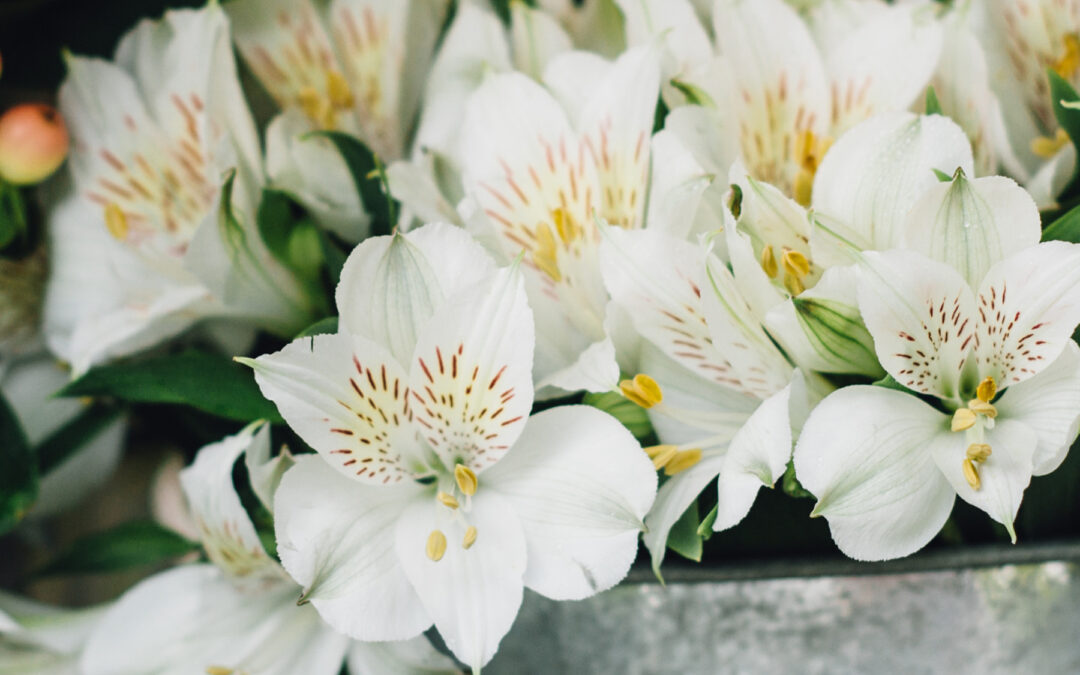 Alstroemeria are a springtime wedding favorite. These hardy blooms are ideal for filler with their smooth petals, the numerous flowers on each stem, and opaque colors.