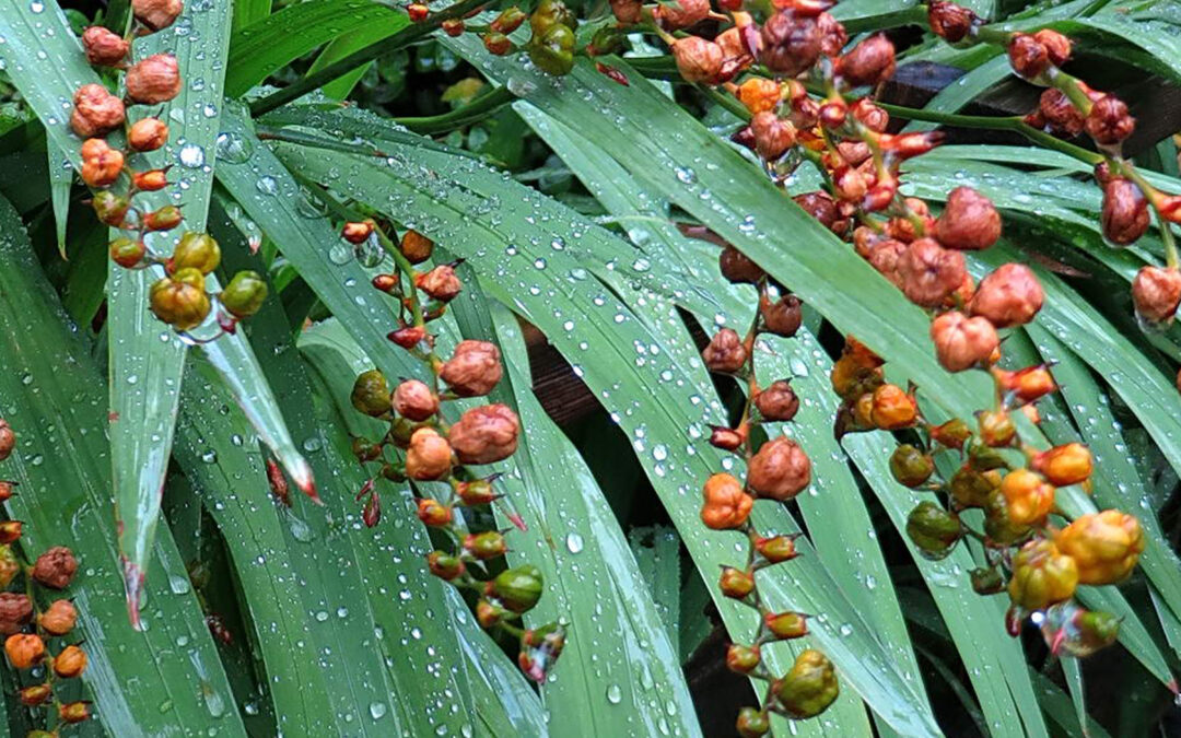 Another fall vibe favorite are the crocosmia berries. Perfect for additional of flair to add to early autumn bouquets with their vibrant and warm colors contrasted with the dark stems and leaves. Like firey accents of texture, these fun berries unsurprisingly symbolize warmth and happiness and can be used anytime from late summer into the early fall months.