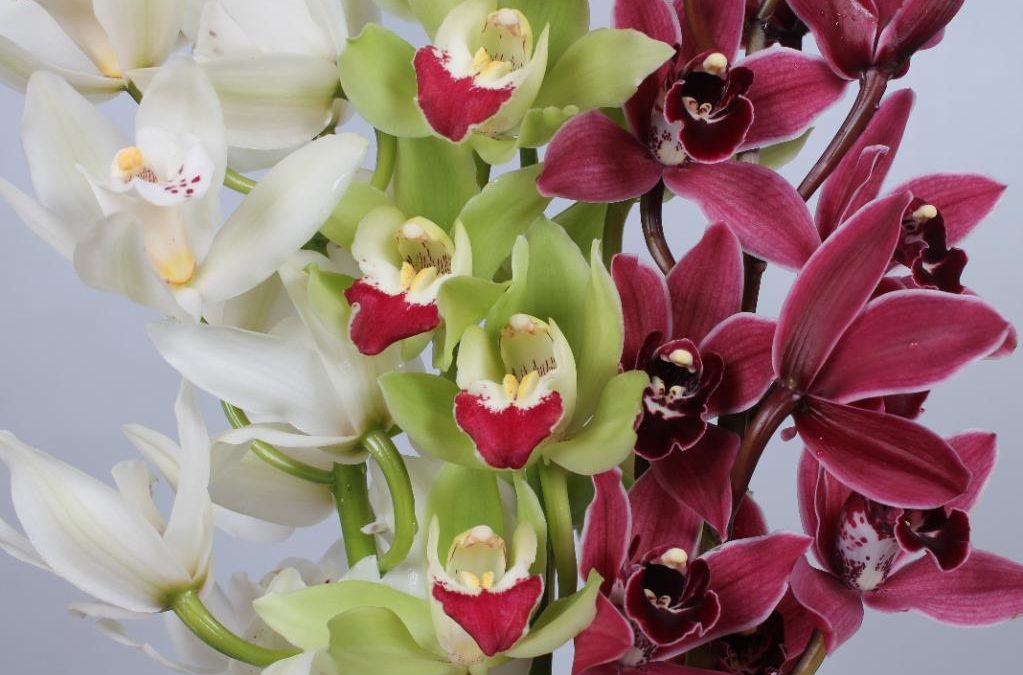 Cymbidium orchid sprays have multiple uses and are an elegant addition to any arrangement. The wiring method is commonly used for adding cymbidium orchids to arrangements and bouquets. Big, beautiful, exotic blooms on the cymbidium orchids come in bright, bold colors such as green, white, pink, and yellow.