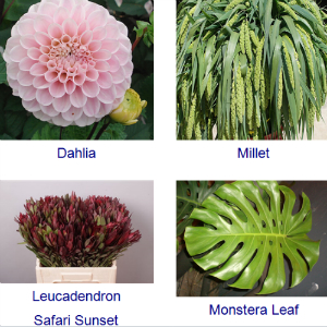 Main Wholesale Florist’s featured flowers this week include Dahlias, Millet, Leucadendron Safari Sunset, and Monstera Leaf