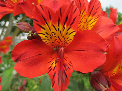 4. Alstroemeria: Red alstroemeria is bold with striking features that make it perfect for vibrant arrangements. As we all know, its affordable too. The yellow tongue brings a summer accent to this July arrangement. The depth of the yellow added to blue and white flowers with greenery will create a well rounded color balance.They are also extremely hardy for your customer’s outdoor parties!
