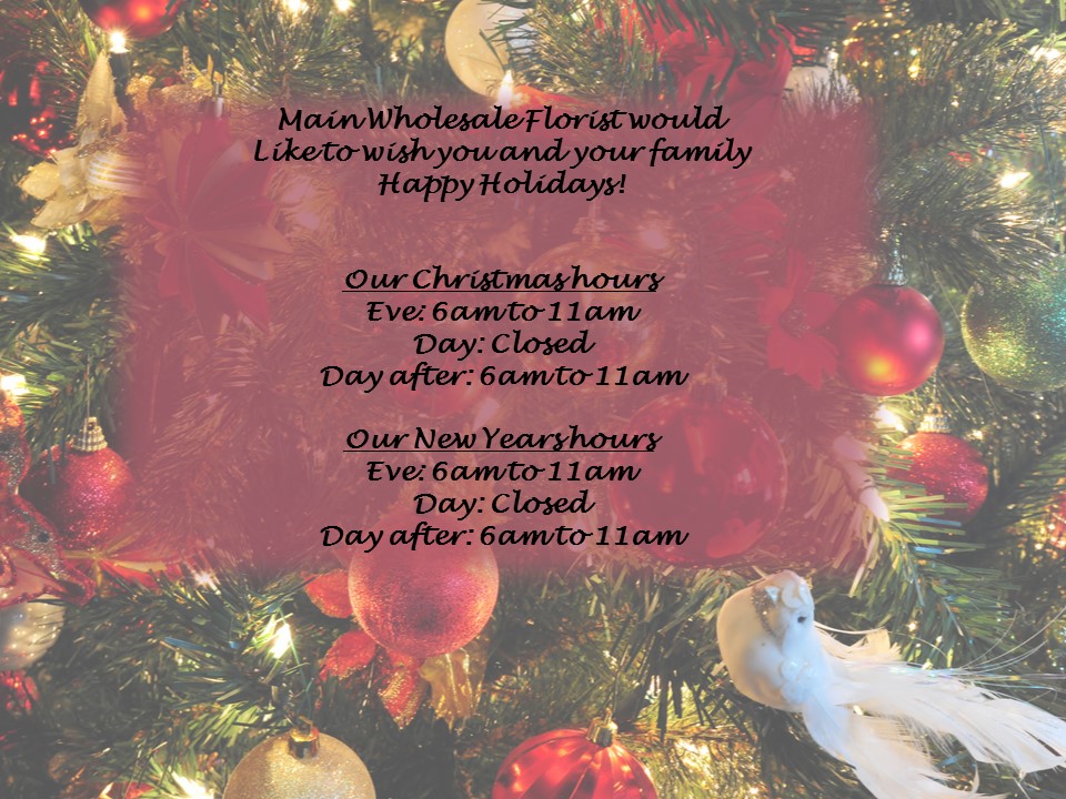 It’s crunch time! We are providing holiday hours just for you. If you are a florist in the tri-state area this time of year you know that there is going to be a lot of traffic through your stores for the next 2 weeks! We have set up a schedule to keep your shops fully stock all holiday season long. Please do not hesitate to come shopping or order flowers online with our flowers express service if you are outside NY, NJ, or CT.