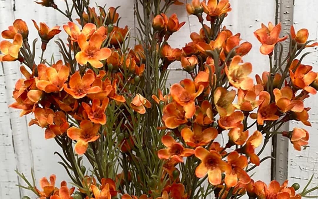 Wax flowers, one of MWF’s most popular flowers during the summer months, are also a crowd favorite in the fall. These playful blooms, dyed a seasonal orange perfect for autumn, are perfect for adding a touch of playfulness and colors in arrangements this October.