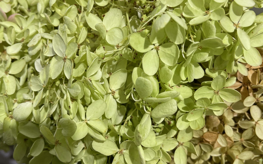 The Pee Gee Hydrangea bring lightness and different petal colors depending on the season. They begin as a pale lime green and slowly turn a pinkish white in autumn. These big bunches of flowers bring hopeful energy to a bouquet and some lighter colors to a season with a lot of faded or dark color-ways.