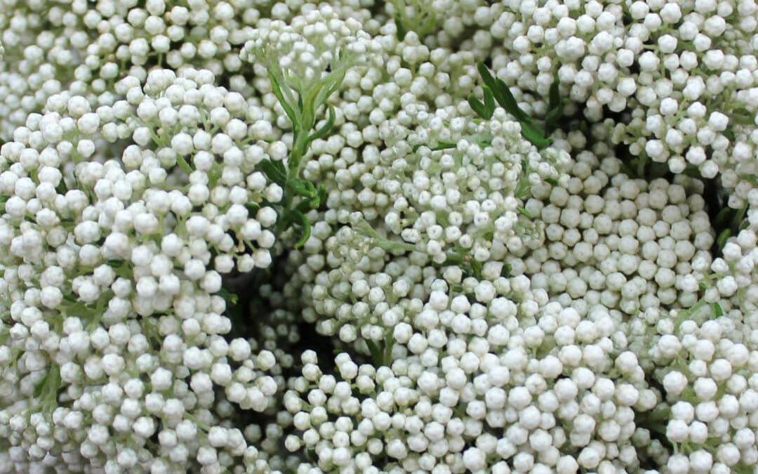 Aptly named, rice flowers are known for their dense clusters of small rice-like blossoms and woody stems. One of the most popular fillers for bouquets and arrangements due to their elegance, volume, and dazzling pop of color. Rice flowers also have an extremely long shelf-life and continue to have a unique beautiful look when dried which is also the origin of its symbolism of everlasting beauty.