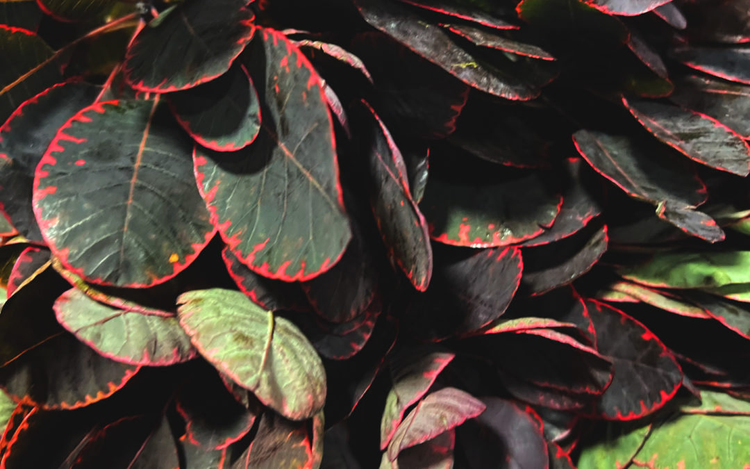 Smoke Bush foliage is known for its deep, regal leaf colors. The dark green with an almost fire-like red on the borders makes for an elegant addition to arrangements. The darker shades make for a perfect contrast backdrop when put behind light flowers or help boost warmer hues in your bouquets this season.