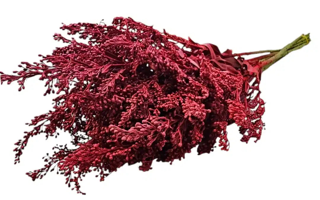 Solidago, also known as goldenrods, add a flurry of light and buoyancy to arrangements or centerpieces. This month, our solidago is painted red giving these flowers a unique and seasonal look. These small wildflowers are ideal for a rustic theme and are an easy filler flower to add playfulness to any type of event decor this November. With its ability to thrive in various climates and seasons, Solidago is a cost-effective, visually appealing choice for florists looking to add warmth and texture to their creations year-round.