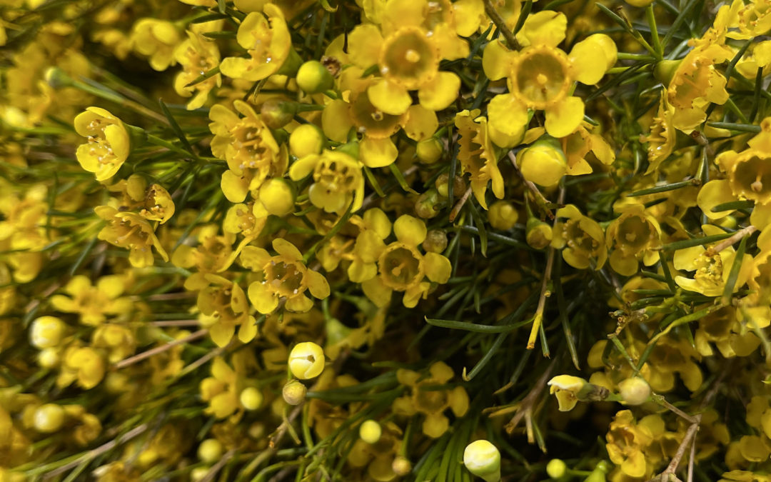 The Wax Flower is a great arrangement filler and in the fall, its petals are a bright yellow that helps illuminate the bouquet in the darker season. Its waxy blossom brings out a wildflower rustic feeling wherever it is used.
